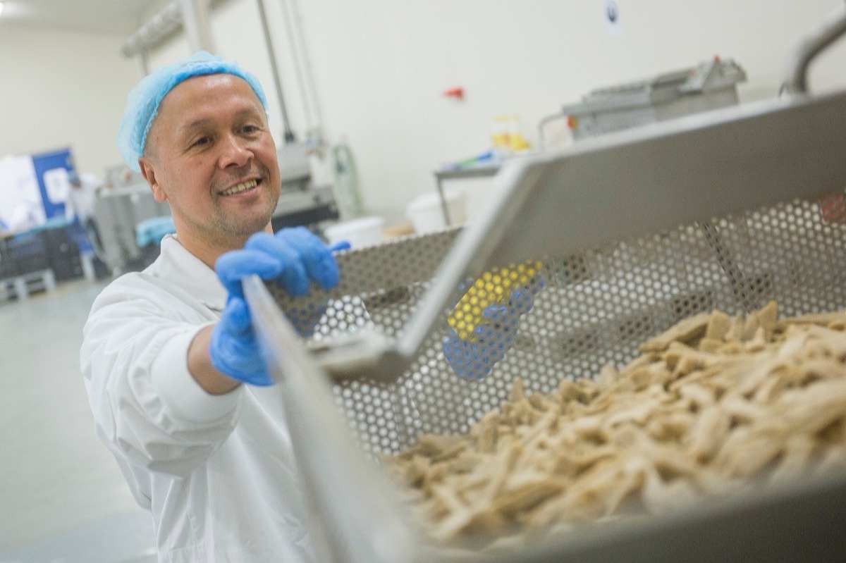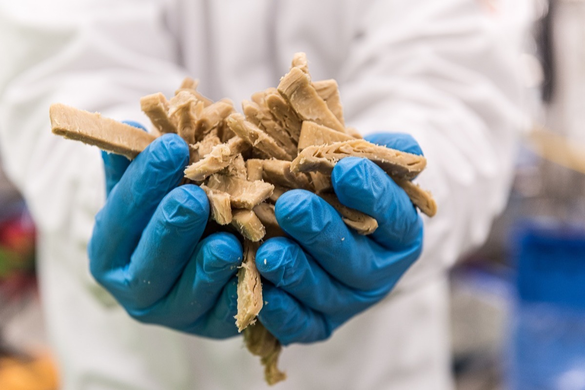 We maken gebruik van een productietechniek, die extrusie wordt genoemd. Met deze techniek maken we producten die een stevige, sappige en vlezige structuur kennen. Doordat de malsheid, vorm en textuur te reguleren zijn, kan deze vleesvervanger verwerkt worden tot talloze soorten eindproducten. Of het nu gaat om producten die vergelijkbaar zijn met kip, rundvlees, varkensvlees of vis, we hebben ze allemaal beschikbaar. De vele toepassingen variëren van spiesjes, lapjes en (kip)stukjes tot ingrediënten voor pizza's, snacks, quiches, soepen, sauzen en stoofpotjes.